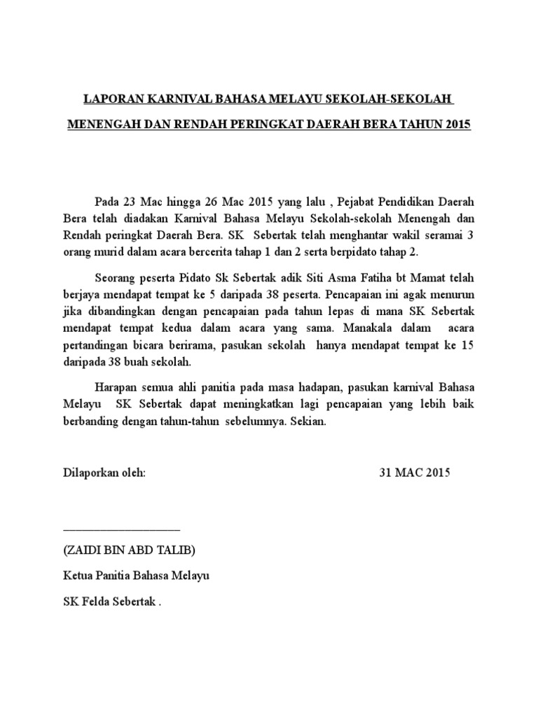 Contoh Laporankarnival Bahasa Melayu Peringkat Daerah By Tia_128Aryan 14 Aug, 2022 Post a Comment Laporan Karnival Bahasa Melayu Sekolah Docx 1 Pdf Laporan Karnival Bahasa Melayu Pdf Laporan Karnival Bahasa Melayu 2019 Laporan Karnival Bahasa Melayu 2018 Pdf Laporan Karnival Bahasa Melayu 2019 Share No comments for "Contoh Laporankarnival Bahasa Melayu Peringkat Daerah"